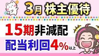 優待株今回は3月株主優待銘柄の中から「配当利回り4%以上」「非減配15期以上」で、100株から株主優待が貰える銘柄を厳選してご紹介します‼ ただし、株主優待の条件が長期保有1年以上という銘柄もありますのでご注意く…
