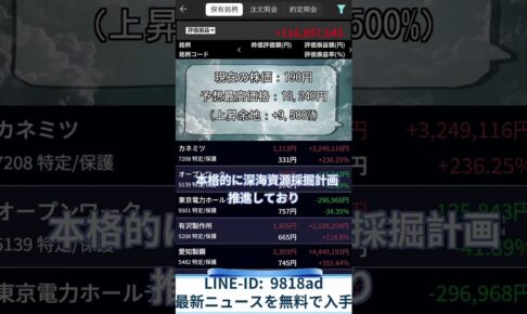 海外株式投資動画で紹介された急騰中の銘柄にご興味のある方は、 LINEで「 9818ad」を検索して友だち追加してください。 「66」と送信すると、最新の資料を無料で入手できます