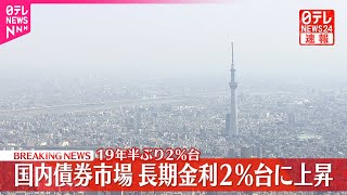 国内債券市場で、長期金利が節目となる2パーセント台まで上昇しました。2パーセント台になるのは、19年半ぶりです。