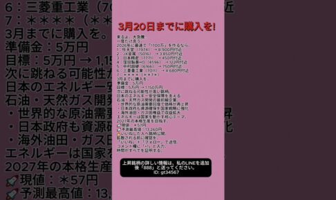 株式投資LINEで【mu3778】を検索して、友だち追加してください。 動画で紹介した急騰中の銘柄にご興味のある方へ。 無料レポートをご用意しています。