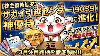 優待株今回は、3月の権利確定銘柄から、株主優待の拡充を発表して話題の「サカイ引越センター(証券コード:9039)」について徹底解説します! 注意事項 ※投資は自己責任。 ※画像は、サカイ引越センター・株探より引用。 ※2026…